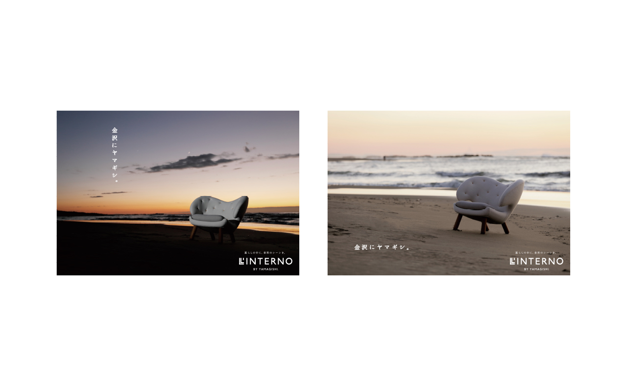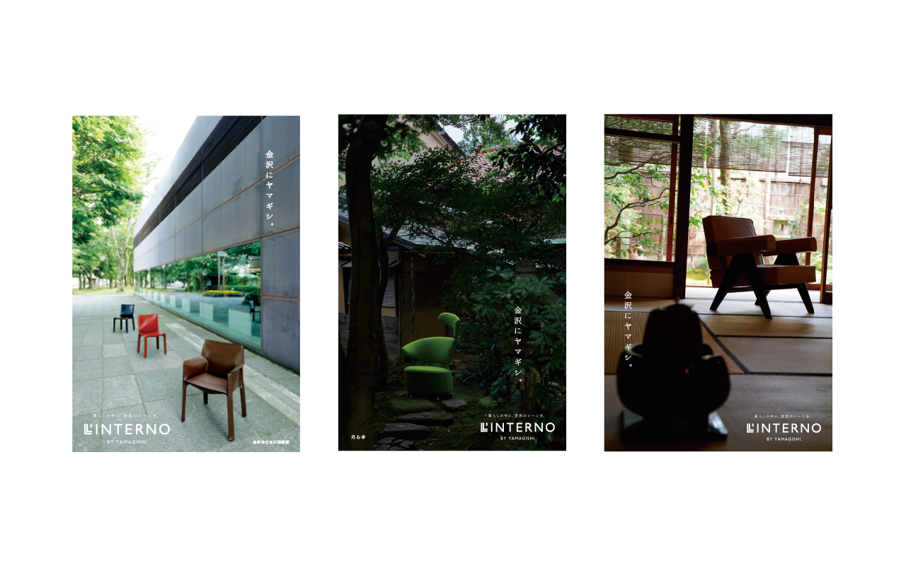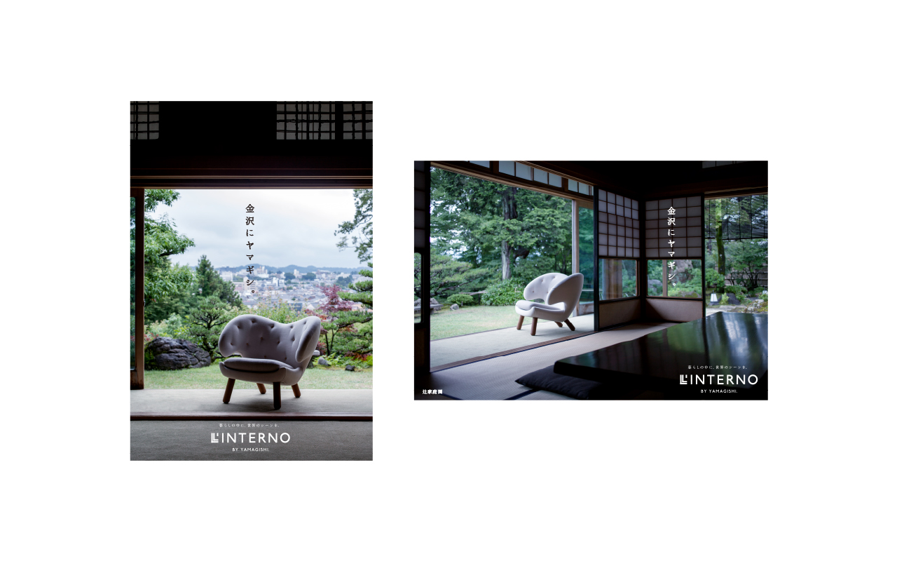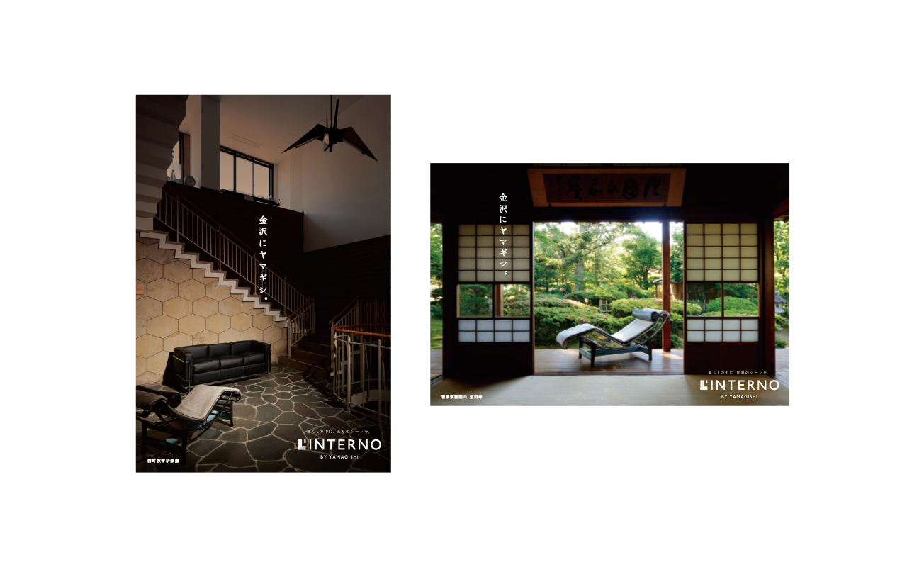 金沢市内で高級ブランド家具を扱う山岸製作所「リンテルノ」。和のイメージの強い古都金沢でモダンの権化の様な家具を扱う特異性を強調したくて、あえて「金沢らしい」場所での撮影を試みました。最終的にはオリジナルカタログになればいいなと考えていました。
