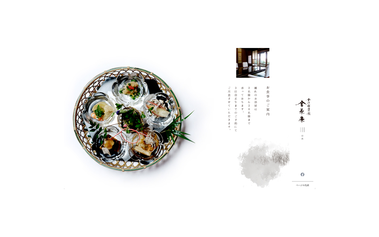1000坪を誇る庭園内の落ち着いた風情、腕と素材を凝らした加賀懐石の真髄をWEBサイトで表現しました。